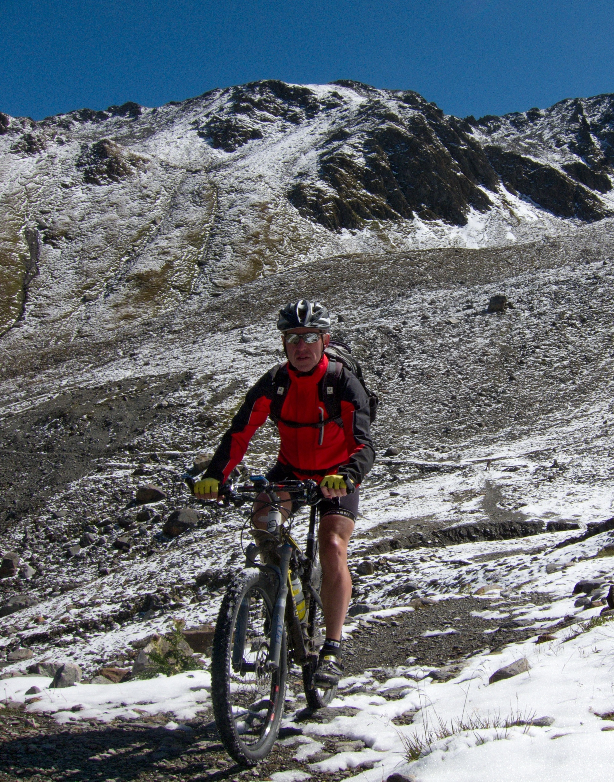 | 2005: Kontrolle der Schweizer Grenzpolizei per Hubschrauber auf dem Schlinig-Pass. Ein Hubschrauber, zwei Beamte und ein Schäferhund zur Kontrolle eines einsamen Mountain-Bikers. Sie fragen tatsächlch, ob ich was zu verzollen hab und ich muss den Ausweis aus dem Rucksack kramen |