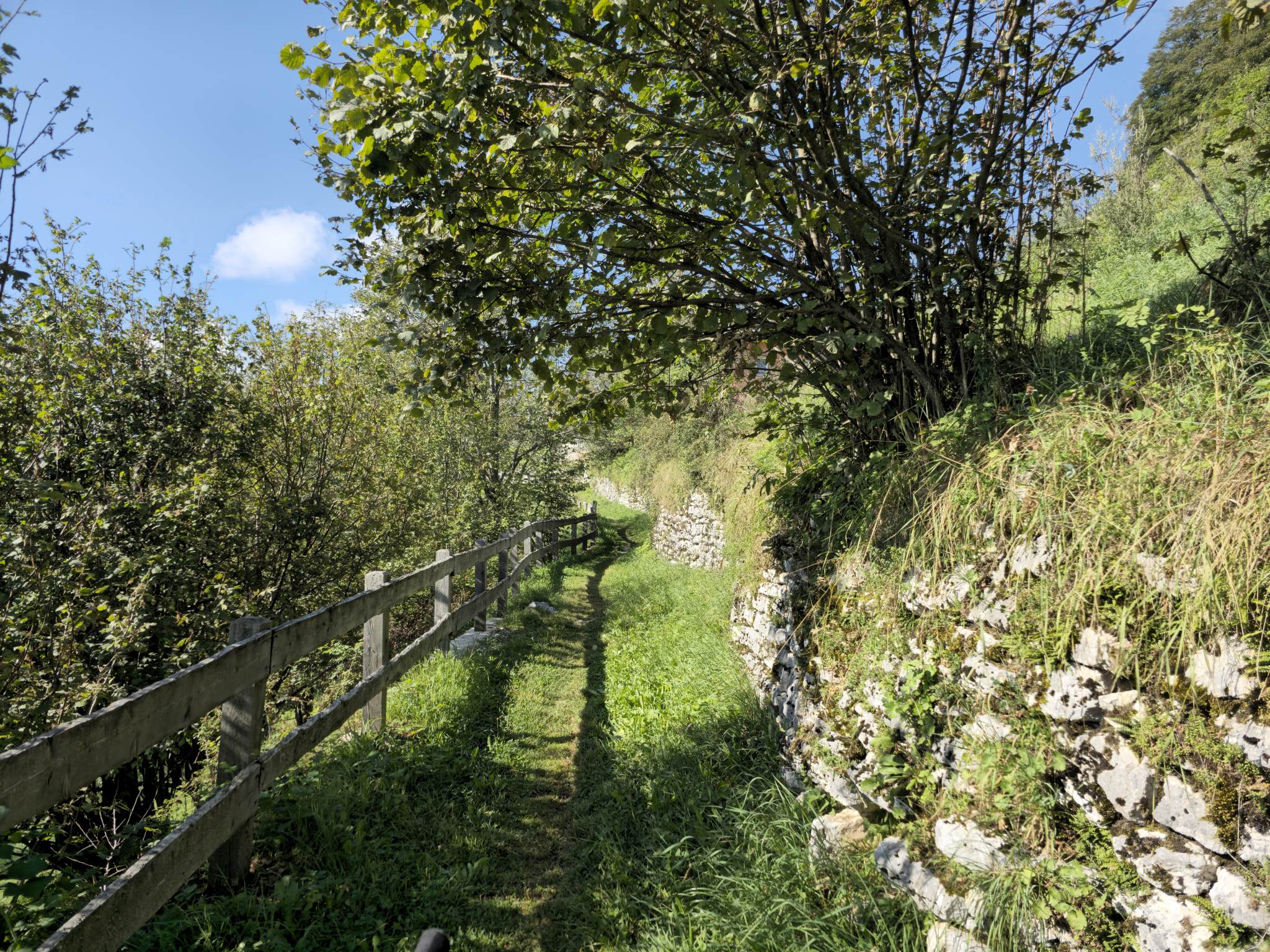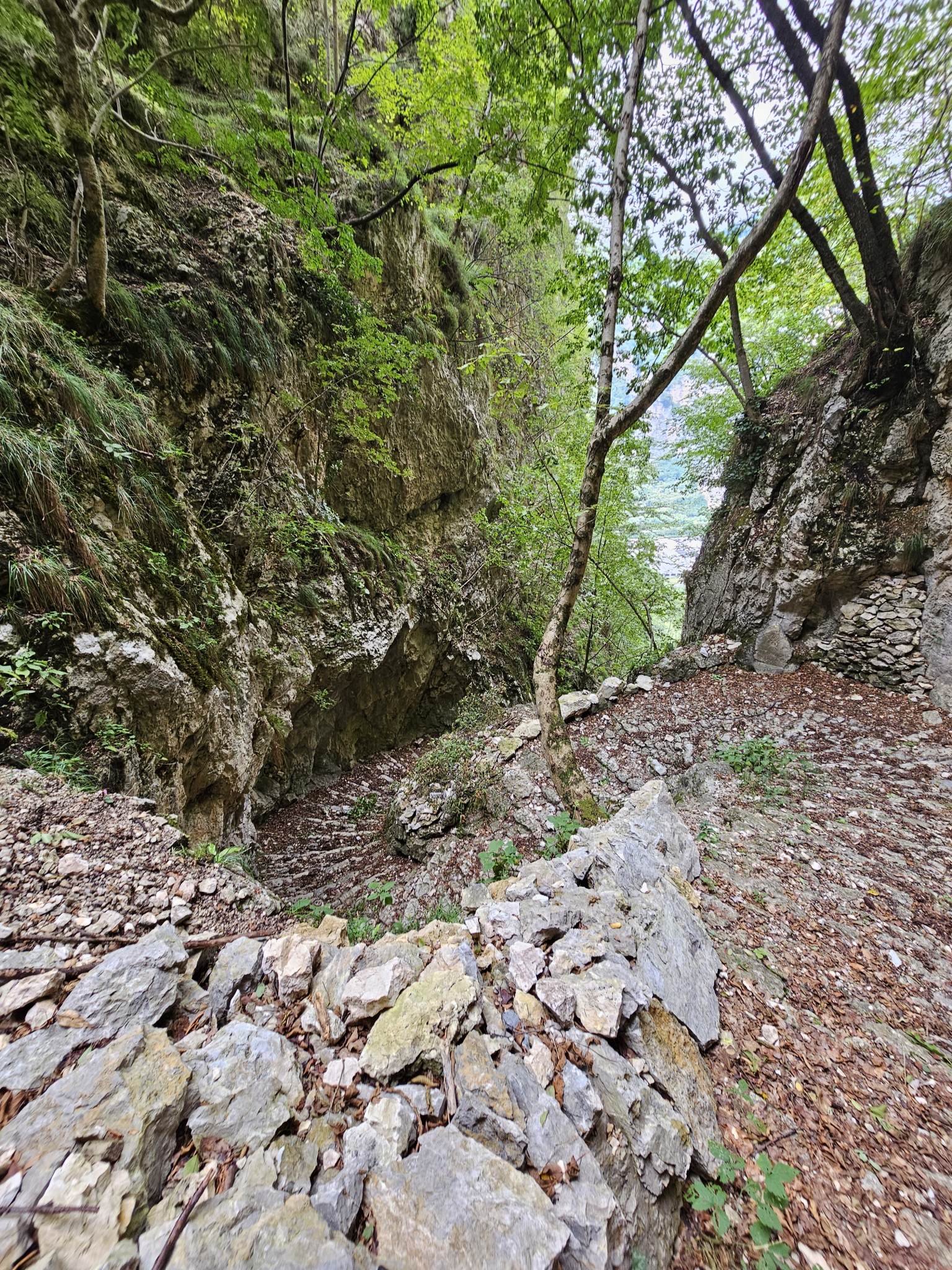 Heute geht es nur auf den Monte Grappa und dann auf einem alten Weg wieder ins Tal bis Grigno. Die Abfahrt ist spektakulär auf einem alten Versorgungsweg, ich treffe aber außer einer richtig großen Schlange, die vor mir auf dem schmalen Weg lag, niemanden.