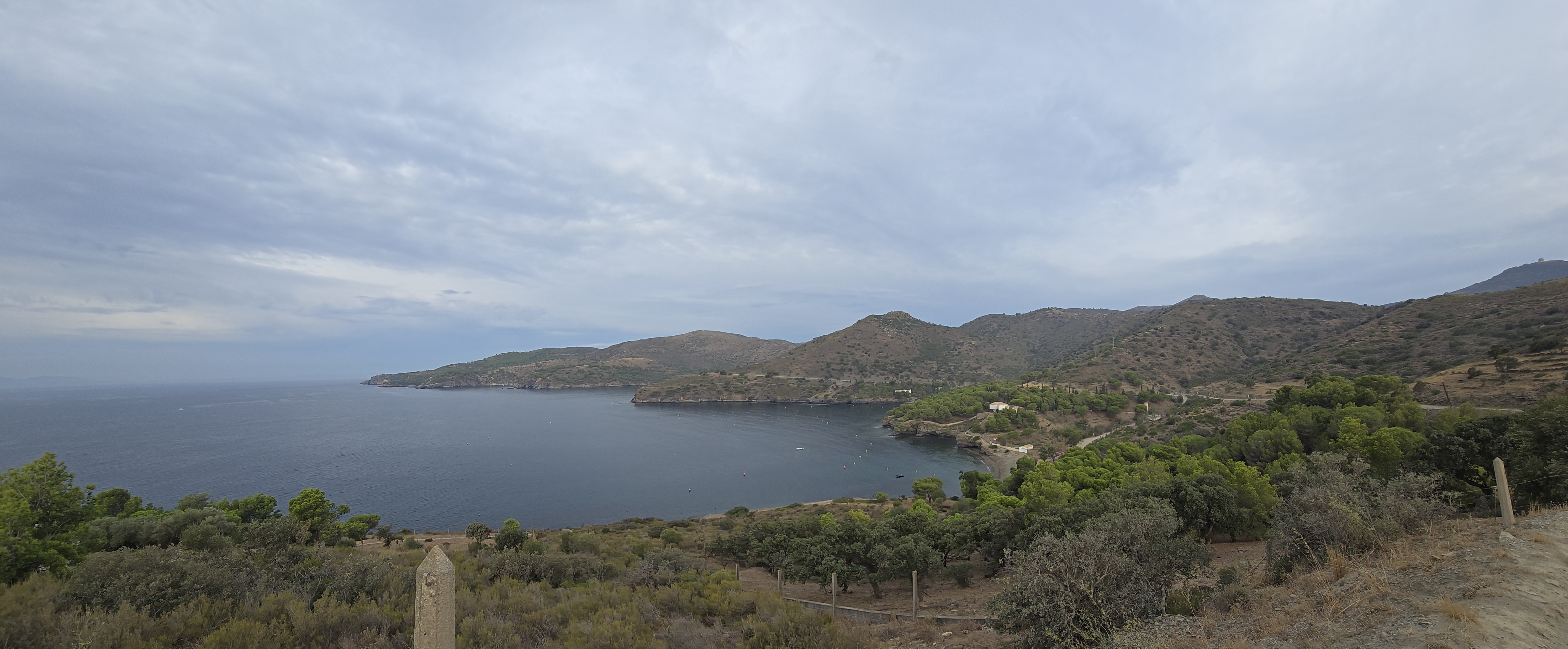 Morgens starte ich die Tour in Castelló D'Empúries. Auf dem Auto sind ein paar Tropfen Regen, aber sonst bin ich froh, dass es noch etwas bewölkt ist. Zunächst fahre ich ans Mittelmeer vorbei an wunderschönen einsamen Buchten. Dann geht es schon in die Ausläufer der Pyrenäen bis nach La Jonquera.