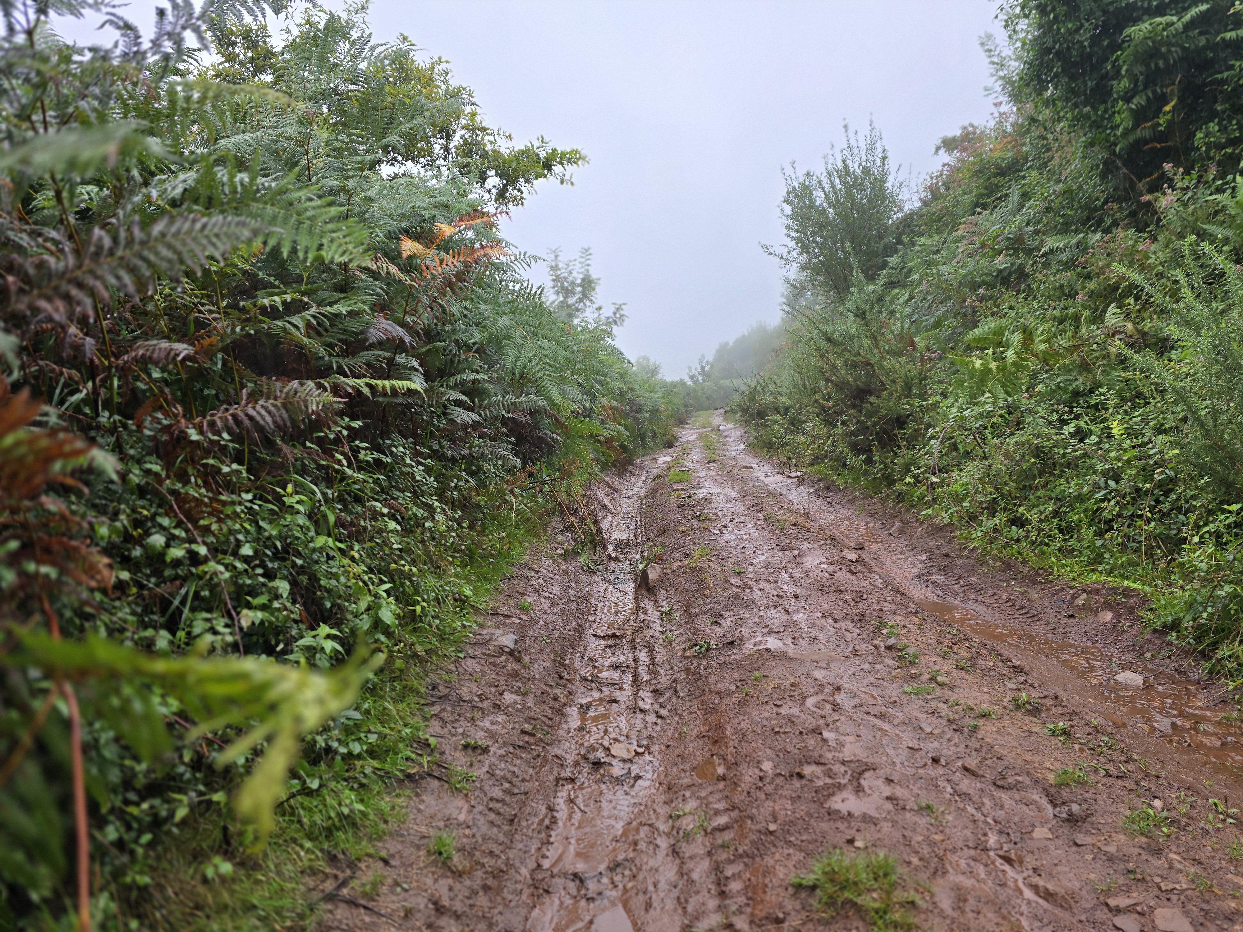Bei Trockenheit wären das schöne Wege mit dem Mountainbike, so kämpfe ich mich durch viel Matsch und Dreck.