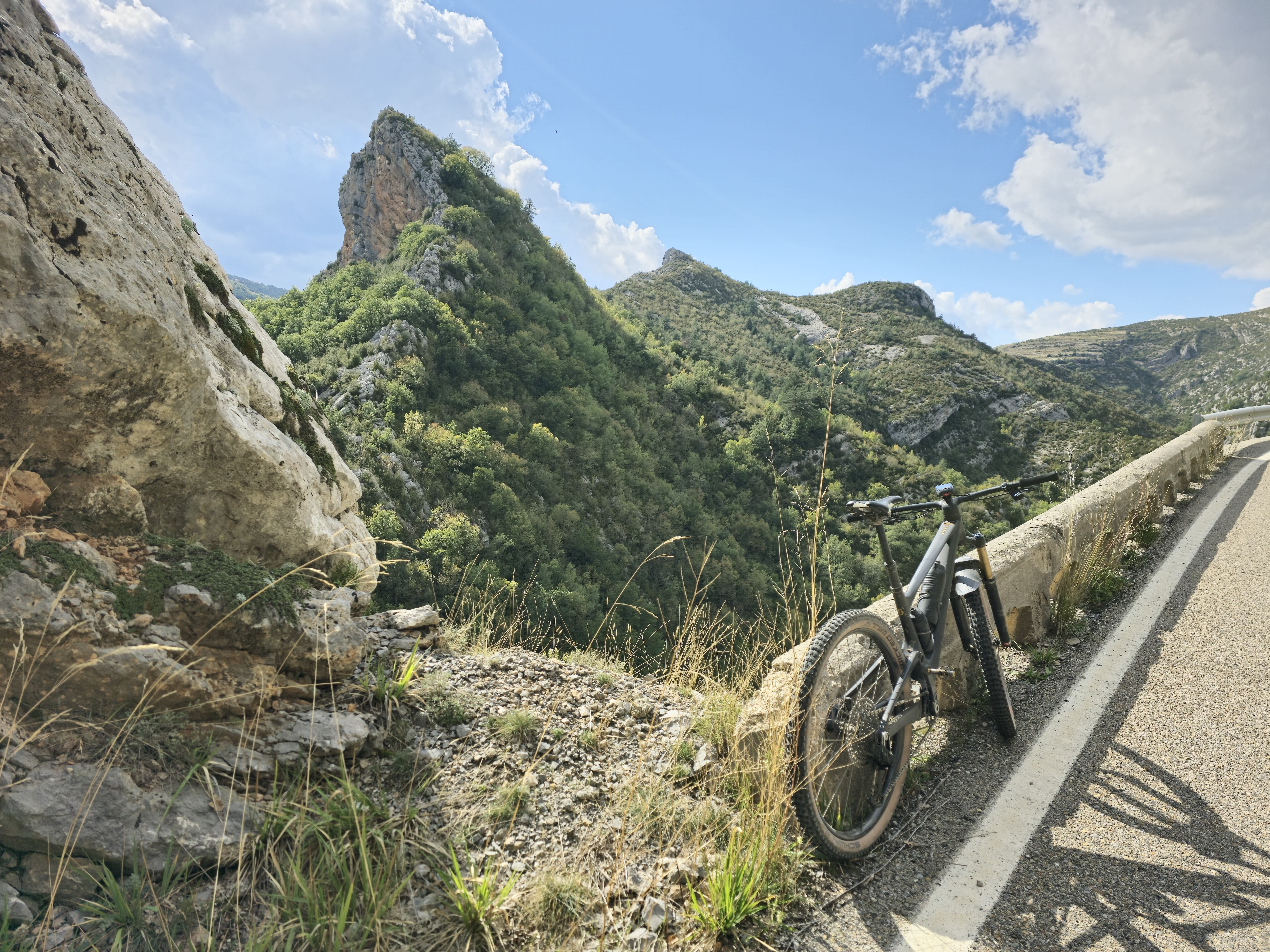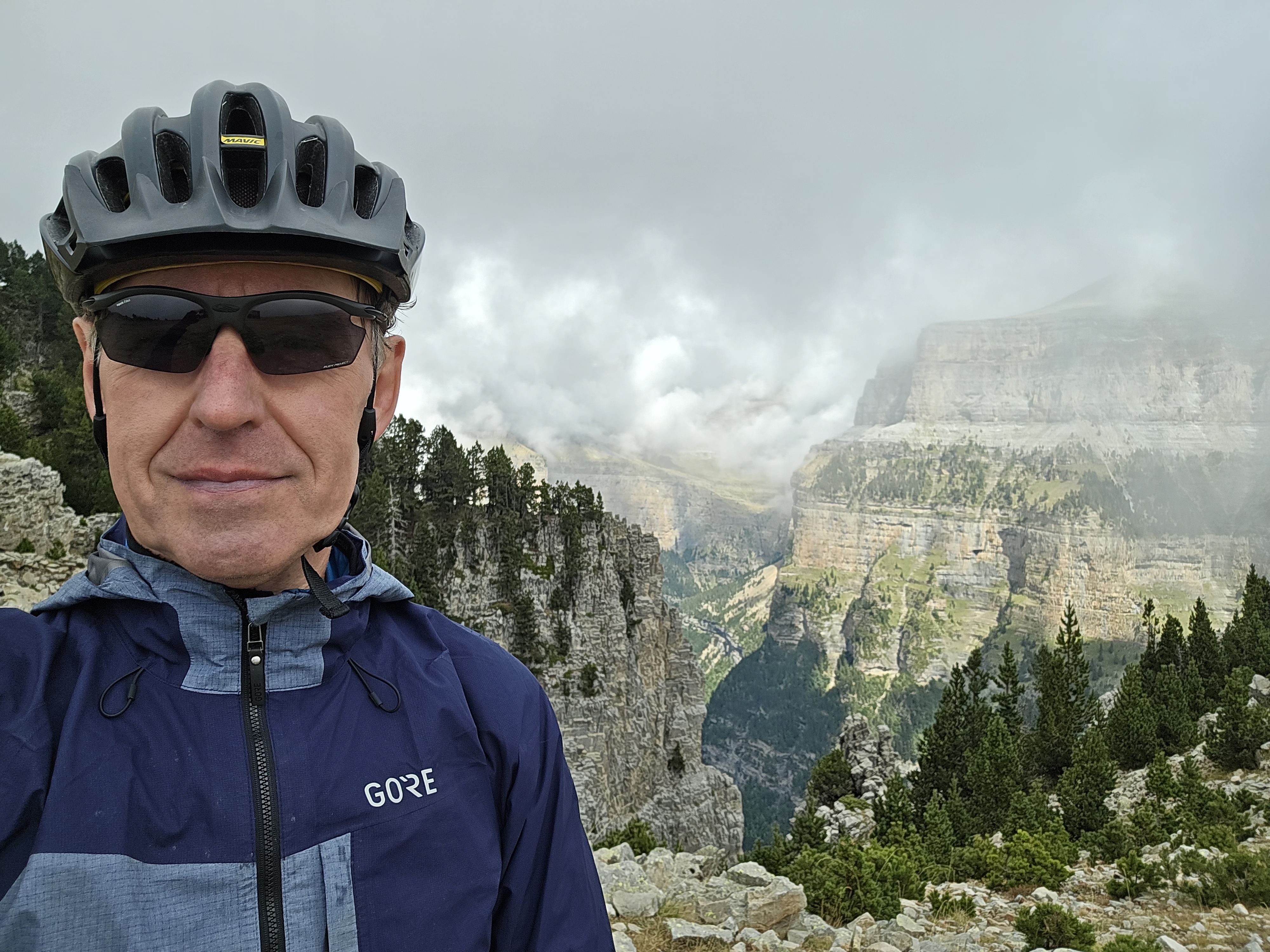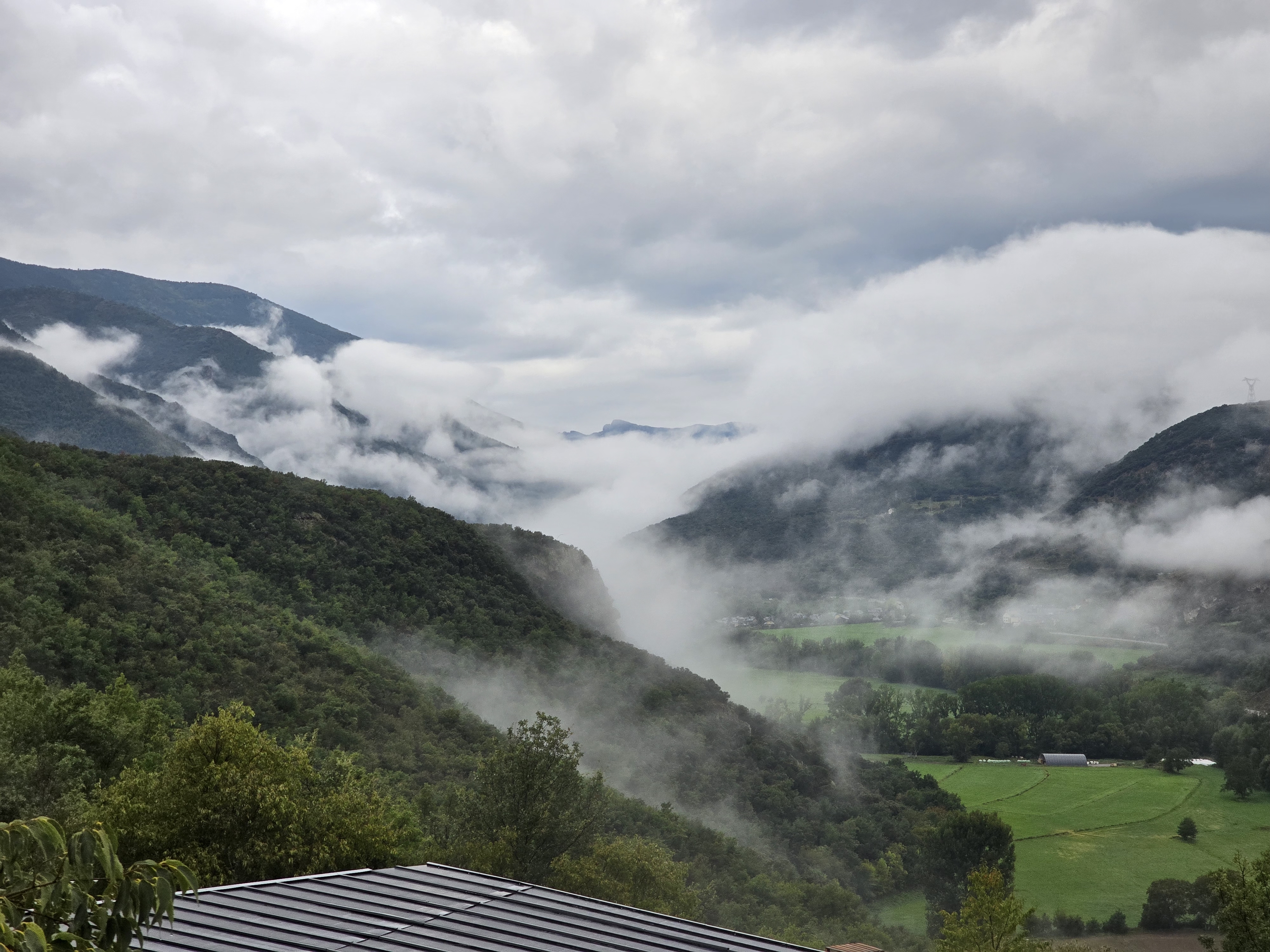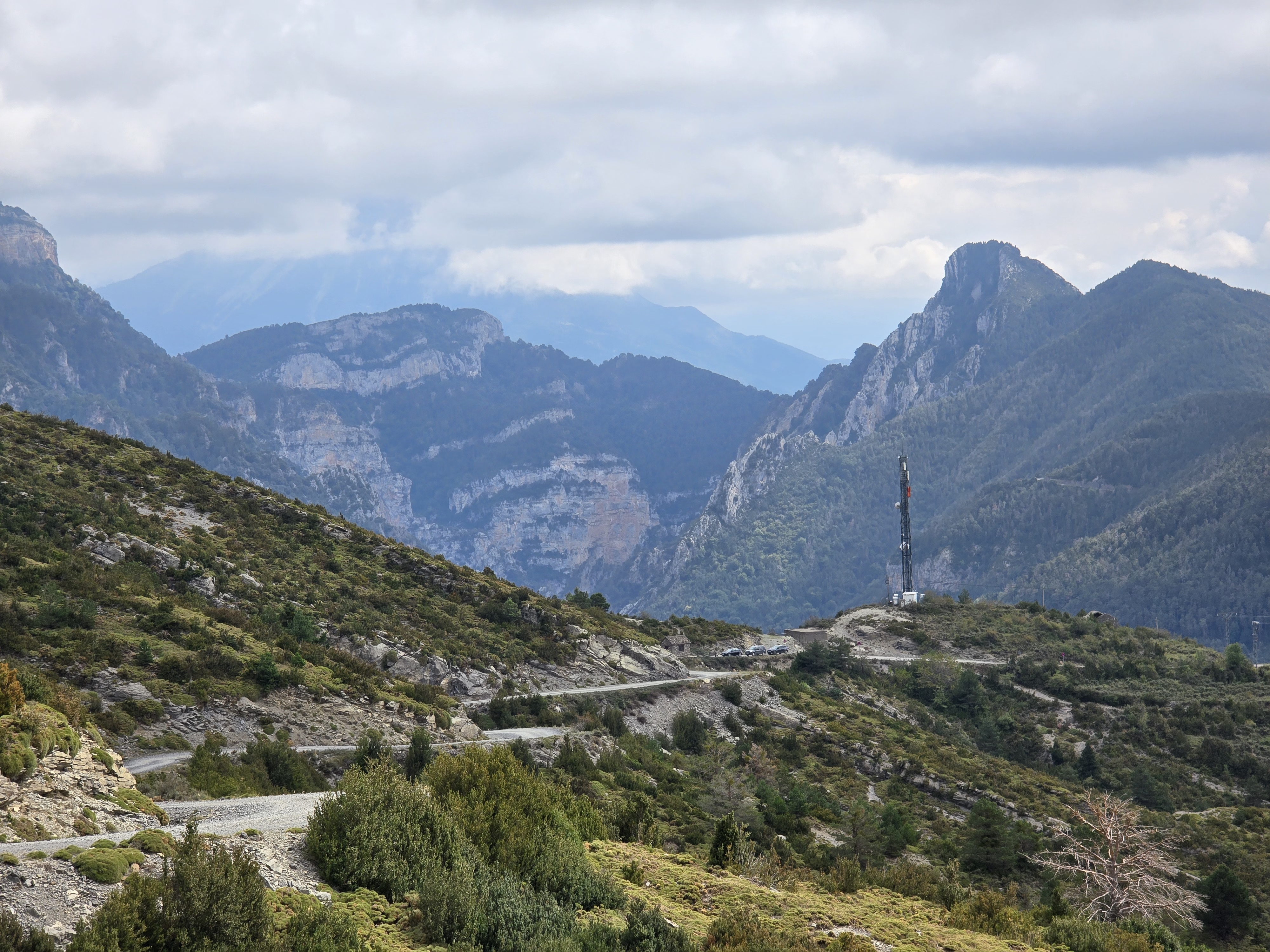 ZWas für ein Tag. Auf wunderschönen Nebenstaßen und schönen Schotterpisten fahre ich den Berg hoch, bin dann oben im Nationalpark "Parque Natural Valles Occidentales". Über der Grenze nach Frankreich sind dann Schilder, die eigentlich das Radfahren verbieten. Das interessiert aber heute niemand. Unten hat es vor 10 Tagen so viel geregnet, das Straßen und Brücken weggeschwemmt wurden und die wichtige Pryrenäenverbindung von Frankreich nach Spanien für mindesten 6 Monate gesperrt ist. Außer mir ist deshalb niemand unterwegs.