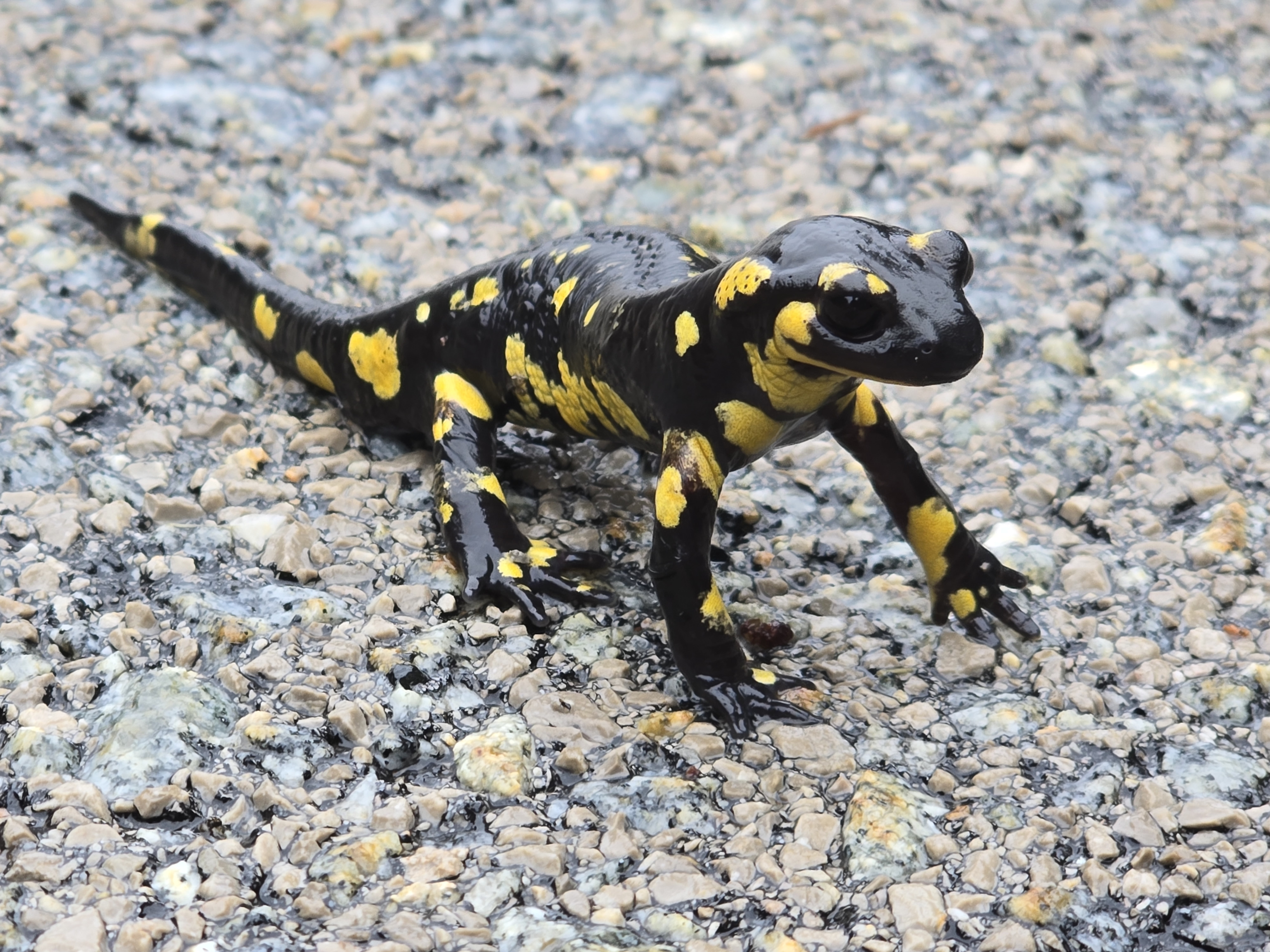 Ein Tag zum Abhaken. Es regnet und ist trüb. Selbst der Feuersalamander auf Straße ist steif vor Kälte.